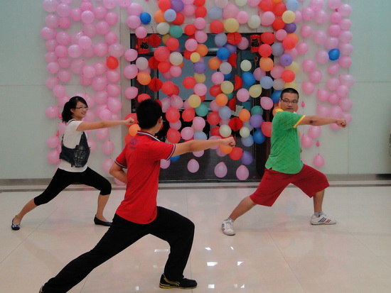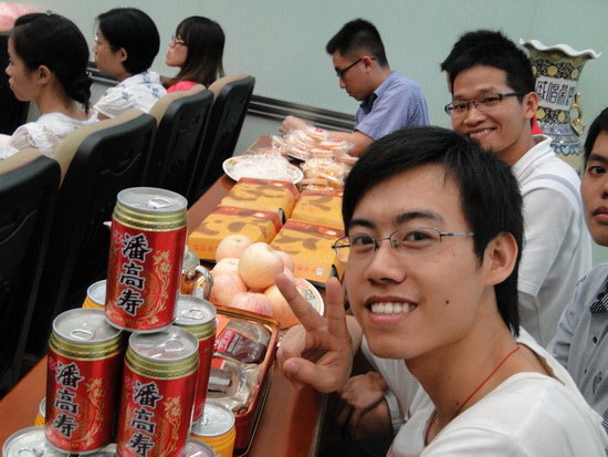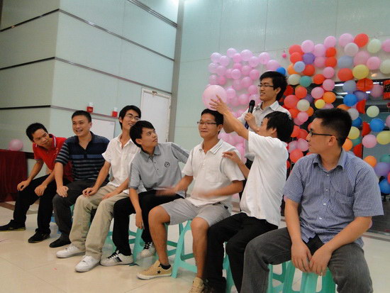 饭堂为晚会准备可口的自助餐。晚会在何月亮彭新的歌声中拉开序幕,年轻人各显身手, T台秀有的活泼搞笑、有的轻盈优雅,健身操活力动感,茶艺展示茶韵悠长,武术表演刚劲有力,还现场收起了徒弟。期间穿插的游戏紧张刺激。晚会最后在优美的歌声中结束。无论是场地布置过程中的不辞辛苦,表演节目的全情投入,还有参加游戏的积极踊跃,这些年轻人的专注和投入都给人留下了深刻印象。在这里大家度过了一个愉快的中秋之夜。
