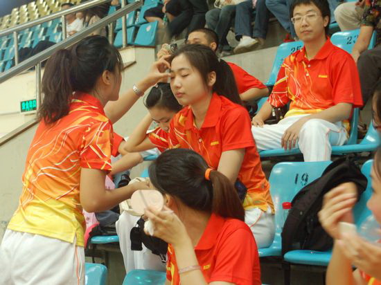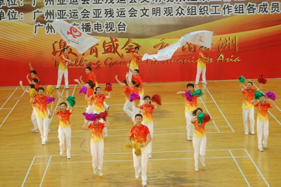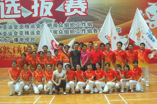 广药潘高寿亚运助威团成员严格按照亚组委及上级的有关要求,认真做好本职工作,努力参加训练。队伍组成后,人人都能按照要求,坚持利用业余时间进行各种项目和动作的训练,并经过严格的训练组成了一支作风过硬,动作标准,纪律严明的亚运志愿者助威队伍,除了按亚组委、亚残组委指定的规定动作之外,还自创编排了一套精彩的自选动作参加各级比赛。