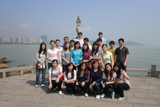 不知不觉间,我们就来到了珠海,我们首先到的是“珠江海渔女”那里,听当地人说,这个”珠海渔女”是珠海的标志性建筑,这个珠海渔女,站在那里,手里托着一个圆球,她的动作,看上去是那么的优美动人,它那婀娜的风姿,是那么的迷人。在这里,我们也看见了大家一直很想看的大海,看着一望无际的大海,突然我的心里有一种说不出的感觉,感觉它是那么的宽阔,同样又是那么的渺小。宽阔,我们看不见尽头;渺小,它似乎又只在我们的眼中。看见了海,大家是多么的开心,多么的高兴,大家都不会错过任何一个时机和任何一个漂亮的地方,照相留念。个个脸上都洋溢着开心的笑容。