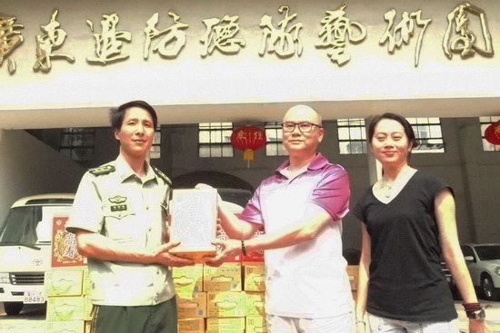 “八一”建军节当日,我司工会黄伯强主席和党办谭慕常干事一行代表公司到武警广东边防总队艺术团进行节日的慰问,向艺术团武警官兵们送上我司的消暑凉茶、润喉糖等产品。