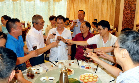 纪委书记、工会主席梁志平向退休员工祝酒
