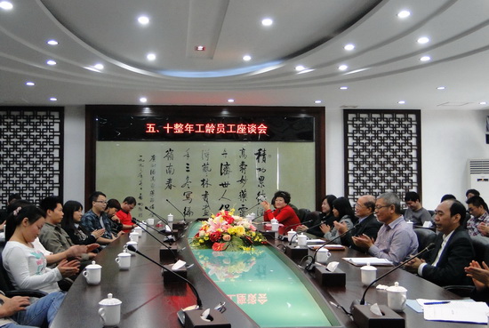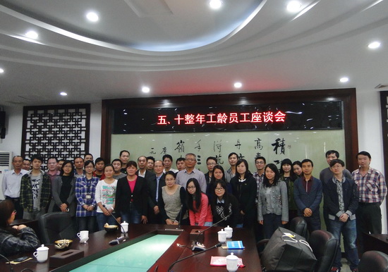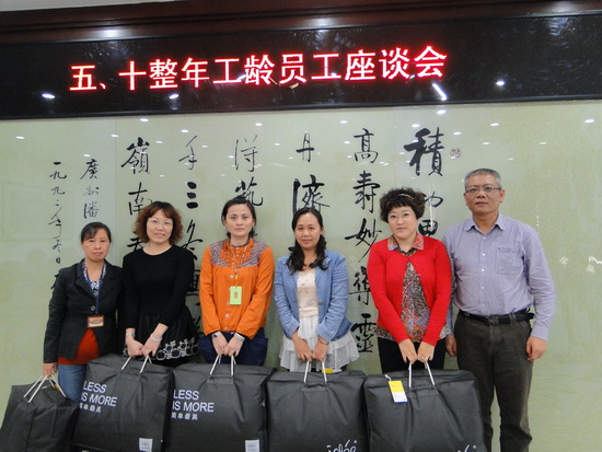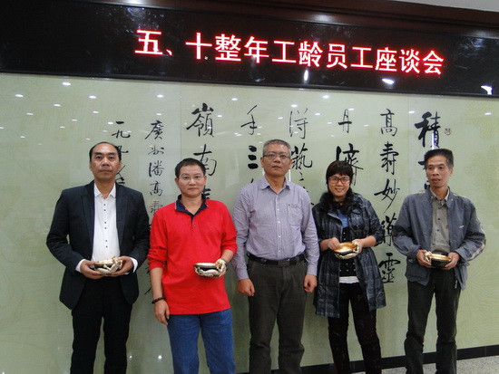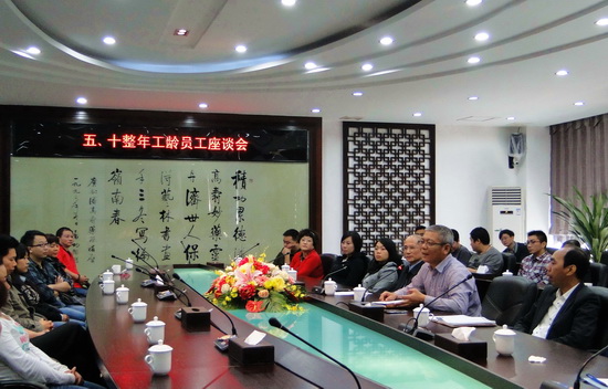 11月20日下午,白云山潘高寿药业五、十整年企业工龄员工座谈会在办公楼一楼会议室举行。董事长、总经理杨东升,纪委书记、工会主席梁志平与企业工龄届满五年、十年、二十年、三十年整的员工参加了座谈会。