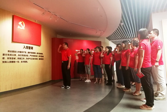 职能二支部组织党员和部分团员代表一行23人来到赤岗街红房子党建基地,开展“不忘初心、牢记使命”主题党日活动,推动主题教育往深里走、往心里走、往实里走。党员们在党委书记苏广丰的带领下重温入党誓词、逐字逐句读党章、认认真真学原著,听苏书记深情讲述初心使命,认真思考如何把中国梦、强企梦同幸福美满个人梦紧紧联系起来,进一步坚守初心、勇担使命,推动学习成效和工作成效。
