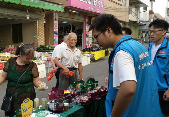 生产运行部多名党员骨干带着各车间党团员分别在东城市场、蔡边市场和龙美市场三个点摆摊促销刺柠吉和龟苓膏。叶善强高级经理率先带队上阵,党员、团员们摆上扶贫产品“刺柠吉”和潘高寿消暑产品“迷你龟苓膏”。大家积极促销的热情,迅速吸引了市场里的顾客上前了解光顾。现场反馈热烈,购买热度持续高涨。接下来,生产党支部将继续开发更多人流量大、接地气的摊位,助力脱贫攻坚,为人民群众在炎炎夏日送上清凉。